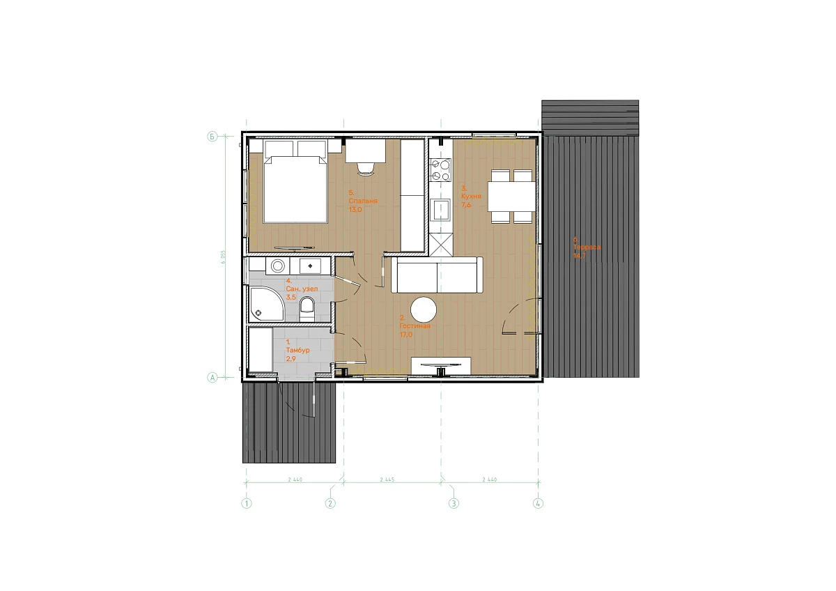 Домокомплект DOORHAN 59 ПРО — это компактный загородный дом для отдыха и сезонного проживания. Отдельная спальня формирует приватную зону, а кухня-гостиная позволяет нескольким людям комфортно проводить время вместе. В доме удобно отдыхать, готовить, смотреть телевизор или принимать гостей. Это формат современной продуманной дачи.